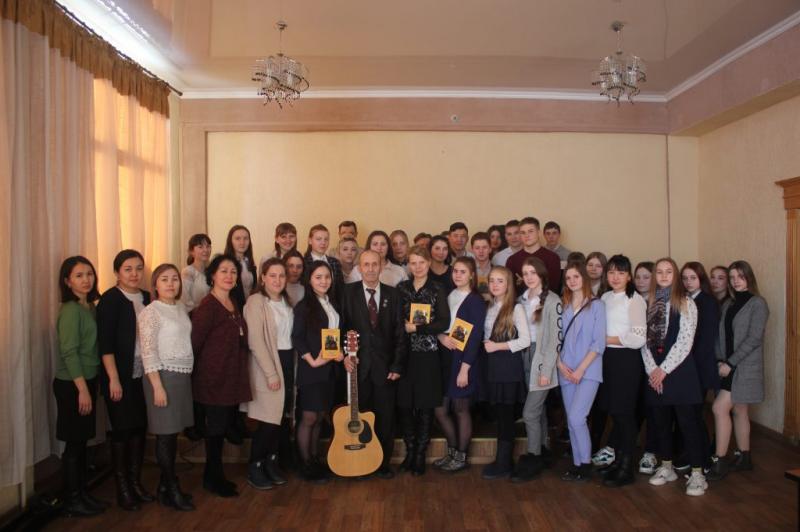 В заключение вечера, лучшим выступающим чтецам и исполнителю песни были вручены сборники стихов поэта с автографом. Увлекательная, очень эмоциональная встреча не оставила участников равнодушными к поэзии и музыке. Живой урок творчества надолго запомнят студенты, которые еще на один шаг приблизились к духовности.