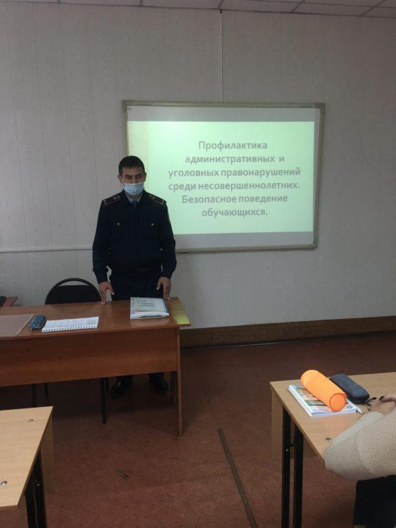 В ходе встречи инспектор дал разъяснение по административному и уголовному законодательству РК, привел примеры из опыта работы о правонарушениях, совершенных несовершеннолетними и мерах их наказания.